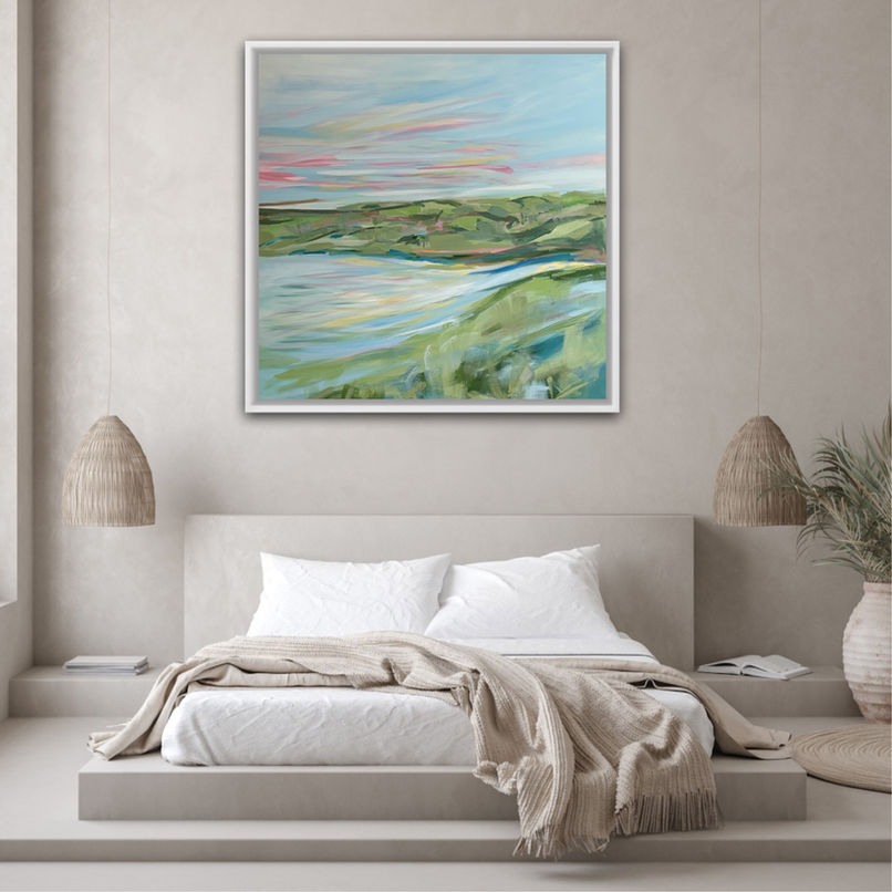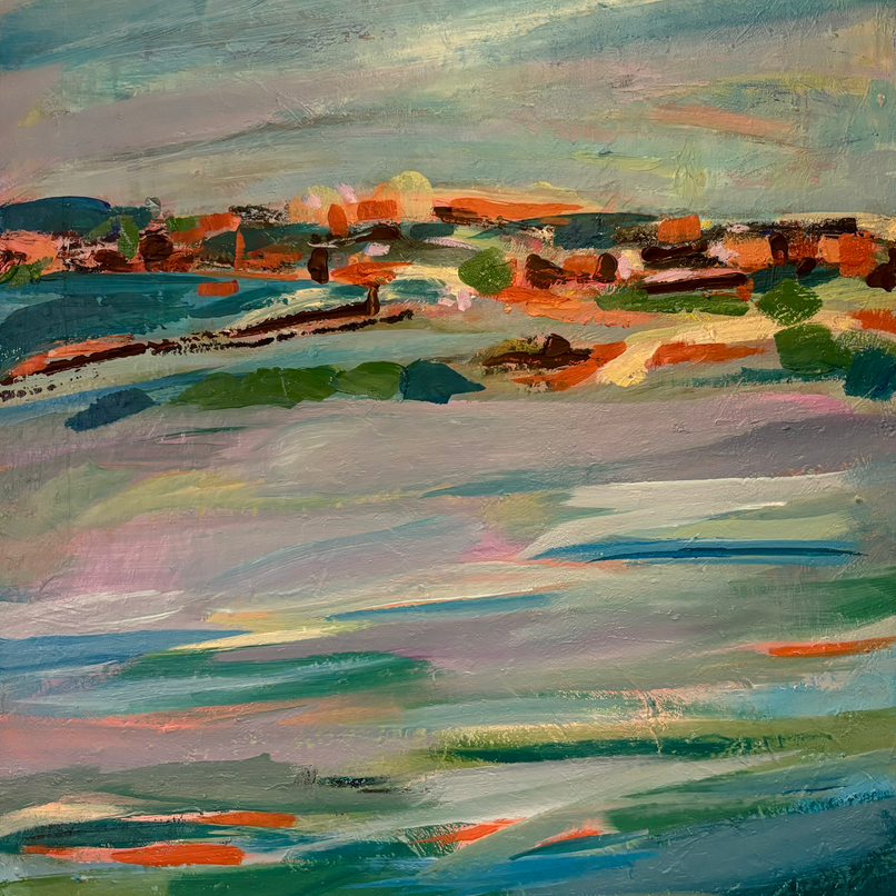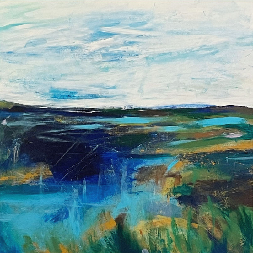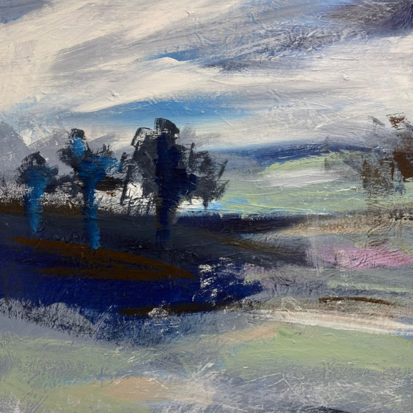 My landscapes are less about geography than about atmosphere — not depictions of place, but translations of feeling. I use colour, texture, and rhythm to build environments that are at once expansive and intimate, drawing on memory, sensation, and the shifting qualities of light and weather.